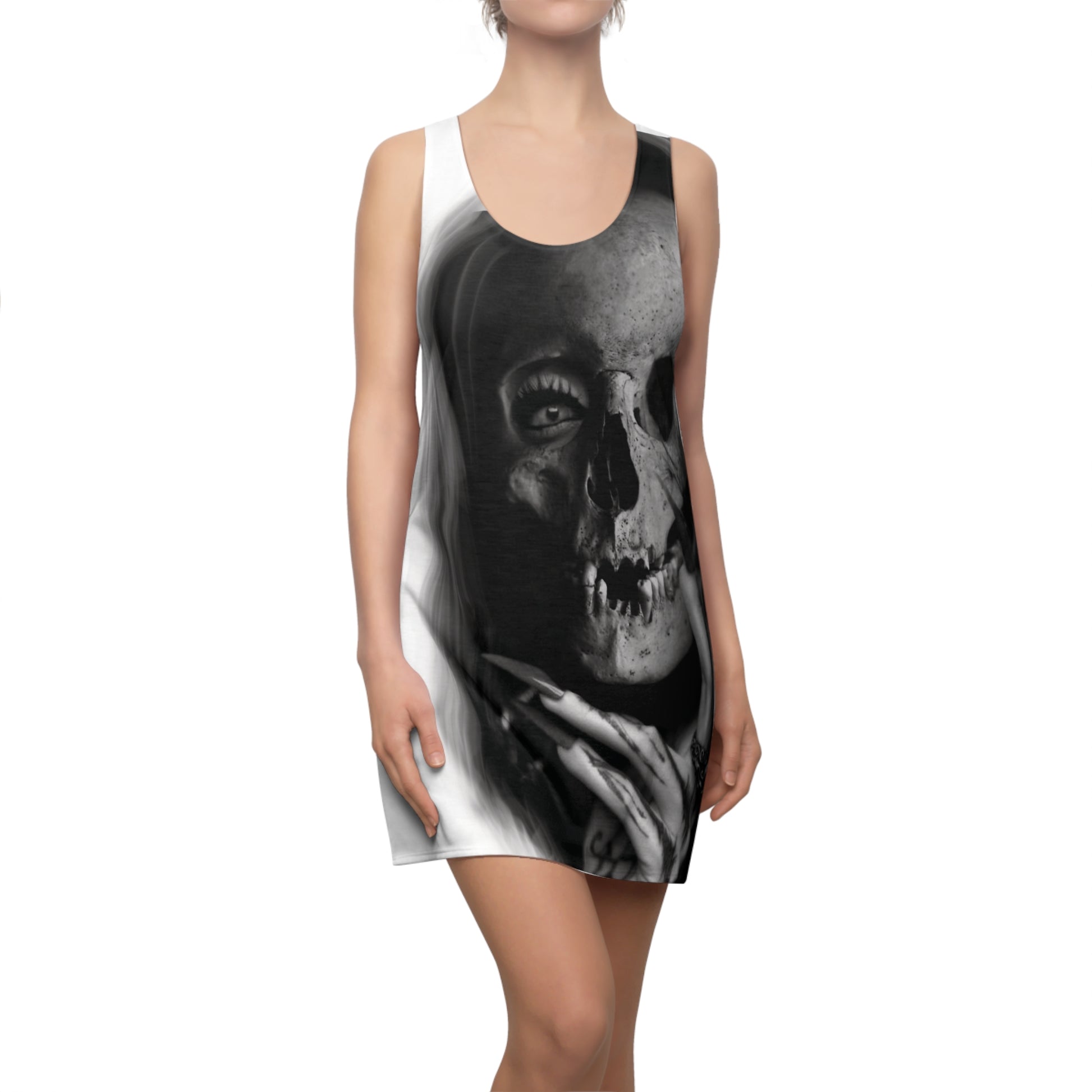 Gothic Skull Racerback Dress, Alternative Fashion Dress, Edgy Summer Dress, AOP Tank Dress, Halloween Party Outfit